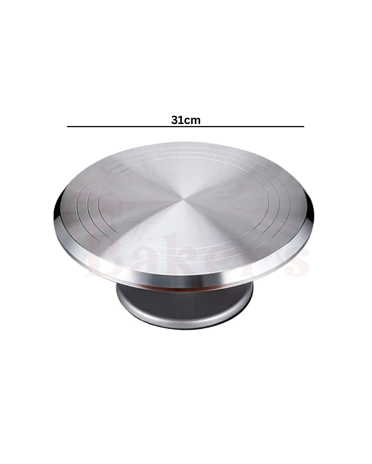 The Stainless Steel Cake Turn Table (31cm) is a durable and smooth rotating platform designed for professional cake decorating. Its sturdy SS body ensures stability while icing, smoothing, and designing cakes with precision. Perfect for home bakers and bakery professionals who need effortless 360° rotation for flawless finishing.