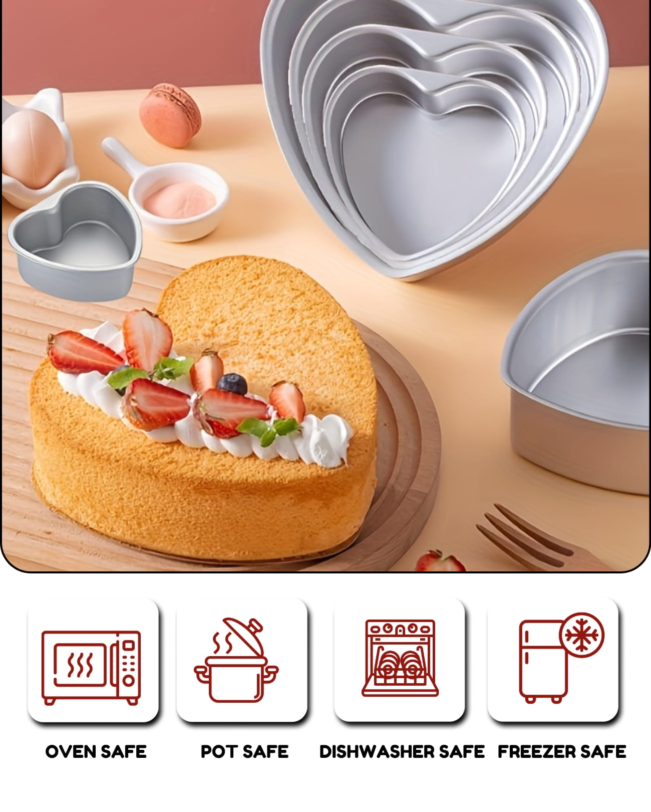 - Creates perfectly shaped heart cakes
