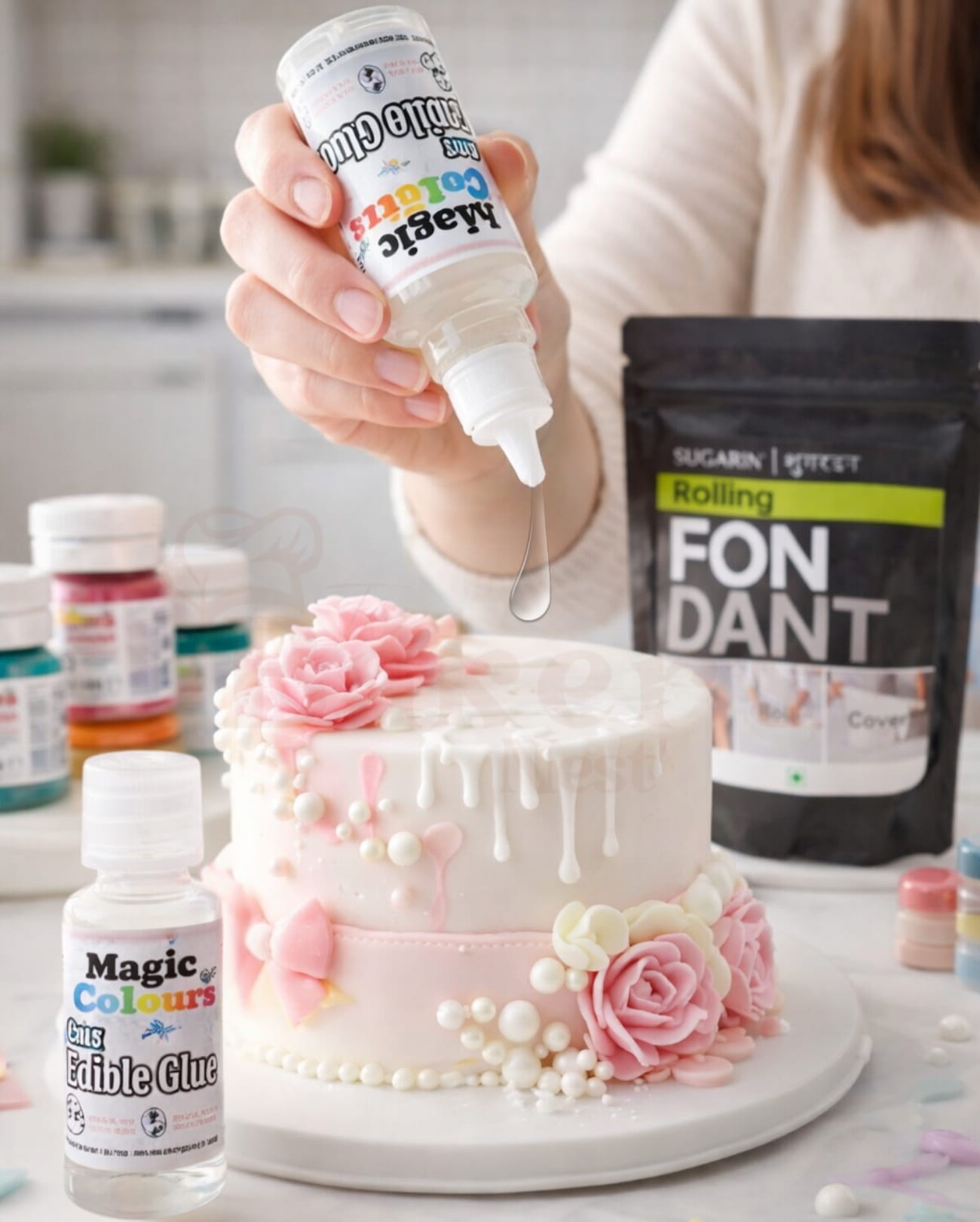 Magic Color Edible Glue 28g is a premium food-grade adhesive designed for secure and precise cake decoration. Its smooth formula provides strong yet safe bonding for fondant, gum paste, sugar flowers, and edible decorations. Perfect for assembling cake toppers and intricate designs with professional-quality finish.