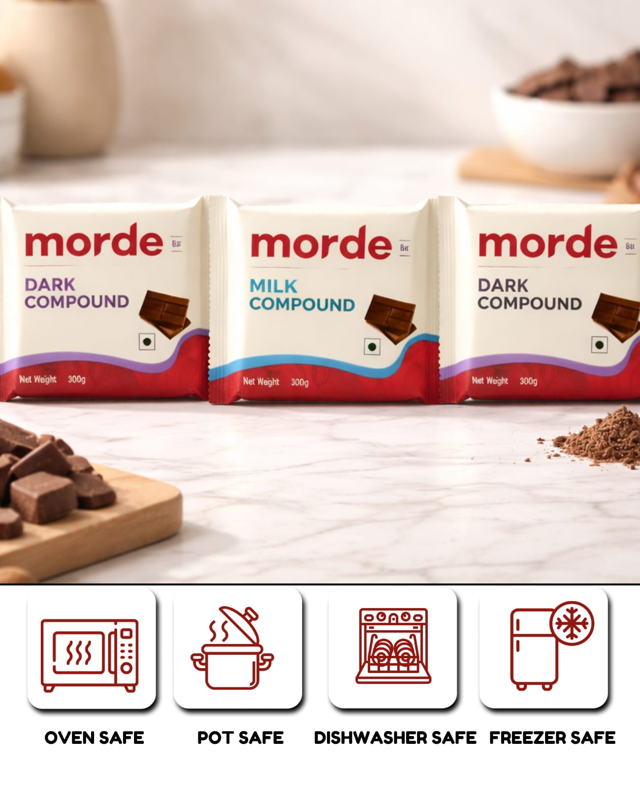 - Available in Dark, White & Milk variants