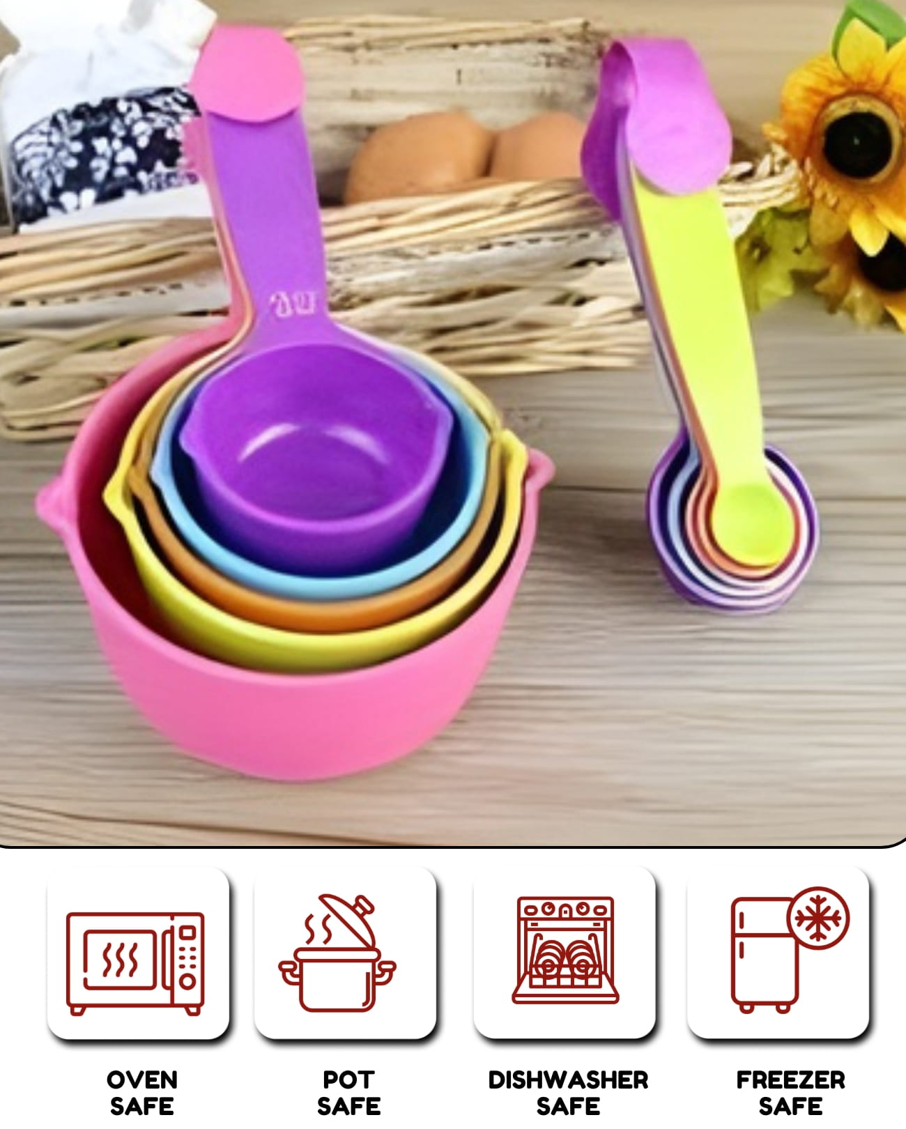 Plastic Measuring Spoons & Cups 10 Pcs Set is a must-have kitchen essential for accurate ingredient measurement. Designed for baking and cooking, this set ensures precise quantities for dry and liquid ingredients. Lightweight, durable, and easy to use, it’s perfect for both home and professional kitchens.