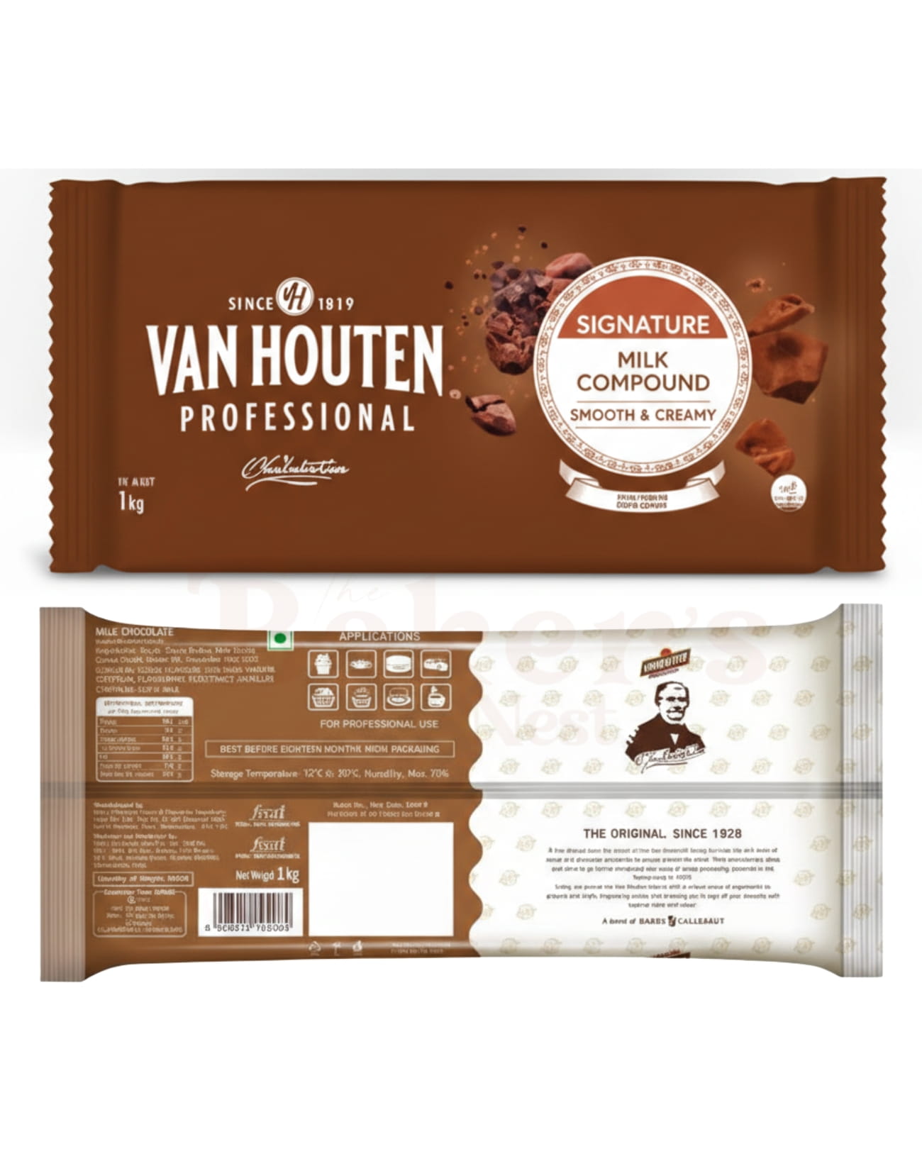 Van Houten Professional 1kg Chocolate Compound is a premium-grade baking chocolate crafted for smooth melting and consistent performance. Available in Milk, Dark, and White variants, it delivers rich flavor, silky texture, and a glossy finish. Ideal for bulk baking, molding, coating, and professional confectionery creations.